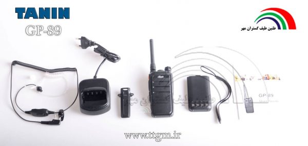Walkie-talkie Tanin Model GP-89 is an authorized two-way wireless device designed to look like a mobile phone and approved by the Radio Regulatory Authority. is. This wireless walkie-talkie uses 16 channels and works well in the UHF frequency band of 433.5 ~ 433 MHz. The GP-89 walkie-talkie has a 90mm antenna that can support a range of between 2,000 and 2,500 meters depending on environmental conditions. The battery used in this model is a licensed wireless walkie-talkie of lithium-ion type with a capacity of 1700 mAh, which can supply the required energy and also the amount of power consumption is equal to 500 Is watts. Walkie-talkie GP-89 has IP55 standard, which can be resistant to dust, shock and moisture, and its use in guarding and security, offices, factories And manufacturing industries, mines, engineering and technical service companies, installation of facilities, contractors, construction and development projects, hospitals and medical centers, hotels, restaurants, halls, neighborhood guards, rescue, universities and training centers, It is also used in commercial and residential complexes, agricultural farms, livestock farms, conference halls, sports halls, mountaineering and tourism, recreational places, personal uses, etc. This product is physically marketed with dimensions of 57 x 35 x 127 mm and weighs 182 grams and is equipped with a flashlight and uses a handsfree to privatize conversations and prevent wireless broadcasting in the environment. p>